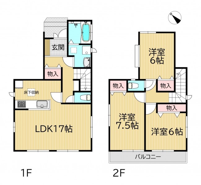 | 設備・条件 | カウンターキッチン、シャンプードレッサー、洗浄便座、追い炊き、複層ガラス、モニタ付インターホン、駐車場2台分、床下収納、トイレ2箇所、シャッター雨戸 | ||