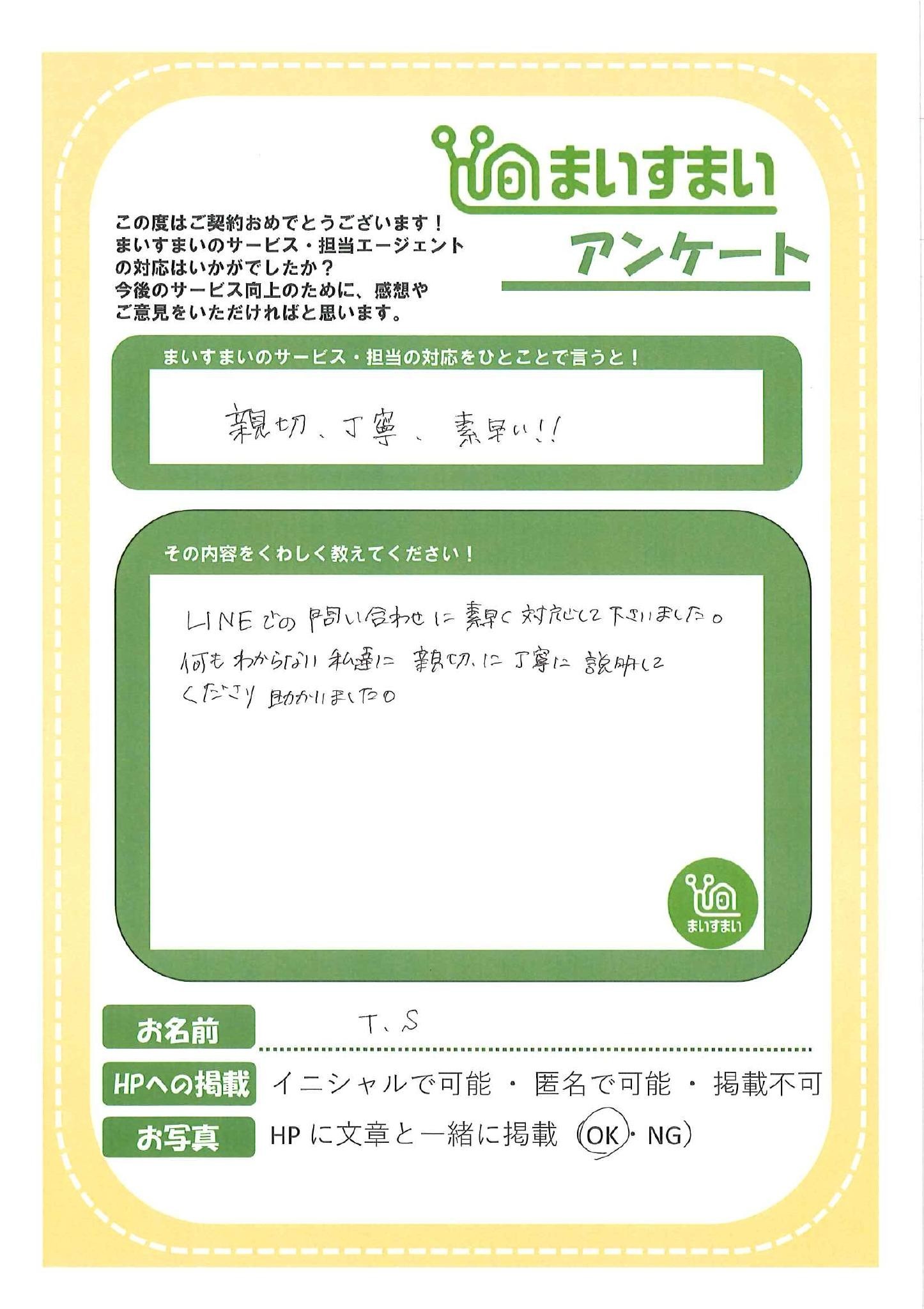 LINEでの問い合わせに素早く対応して下さいました。 何もわからない私達に親切に丁寧に説明してくださり助かりました。
